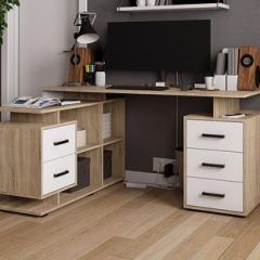 Стол компьютерный угловой СКМУ-3 Белый/Дуб сонома