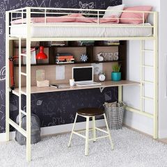 Кровать-чердак "Севилья-1.2" с рабочей поверхностью и полкой Слоновая кость/Дуб Молочный